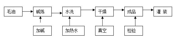 先將水洗后的堿煉油吸入真空干燥鍋,在真空狀態下邊攪拌,便升溫達到98℃左右,再攪拌15分鐘,使水分降到0.1%以下,開始降溫至75℃后,破真空。打開脫色泵到濾油機進行成品油分離,得到成品油。